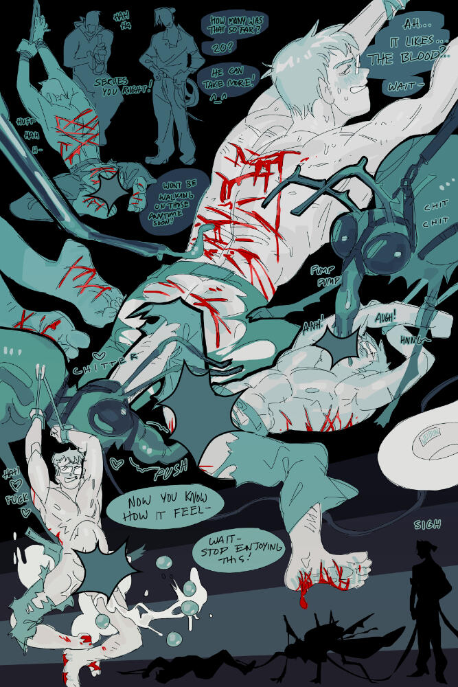 Explicit illustrated depictions of sexual acts with heavy and dark kink themes below